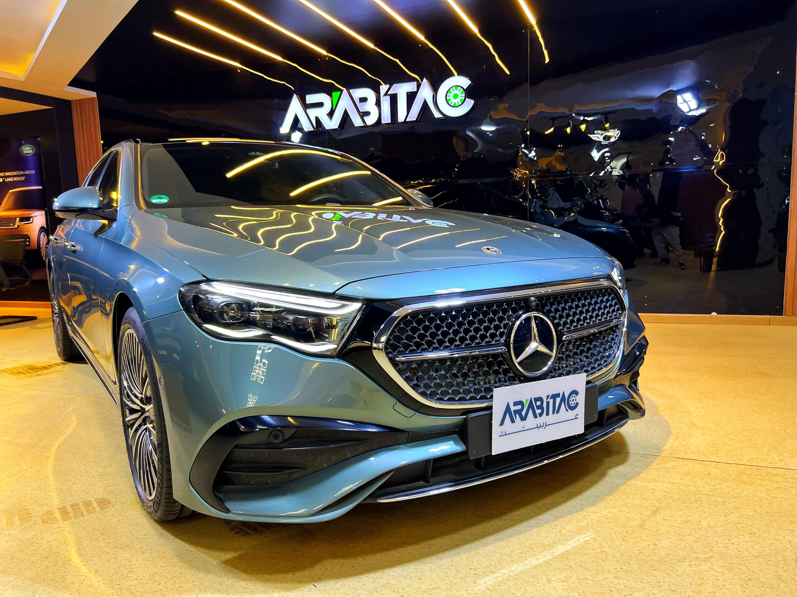 The 2024 Mercedes-Benz E200 AMG Line features a 2.0L turbocharged 4-cylinder engine with a mild-hybrid system, producing around 201 bhp and 320 Nm of torque, mated to a 9-speed automatic transmission. Key specifications include a 0-60 mph time of approximately 7.5 seconds, a top speed of about 149 mph, and a fuel type of petrol.